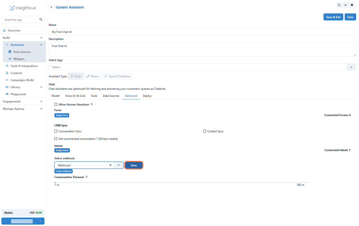 Now, head to the Assistants section. Find the assistant you want to connect the webhook to, and click Edit to open its settings.
